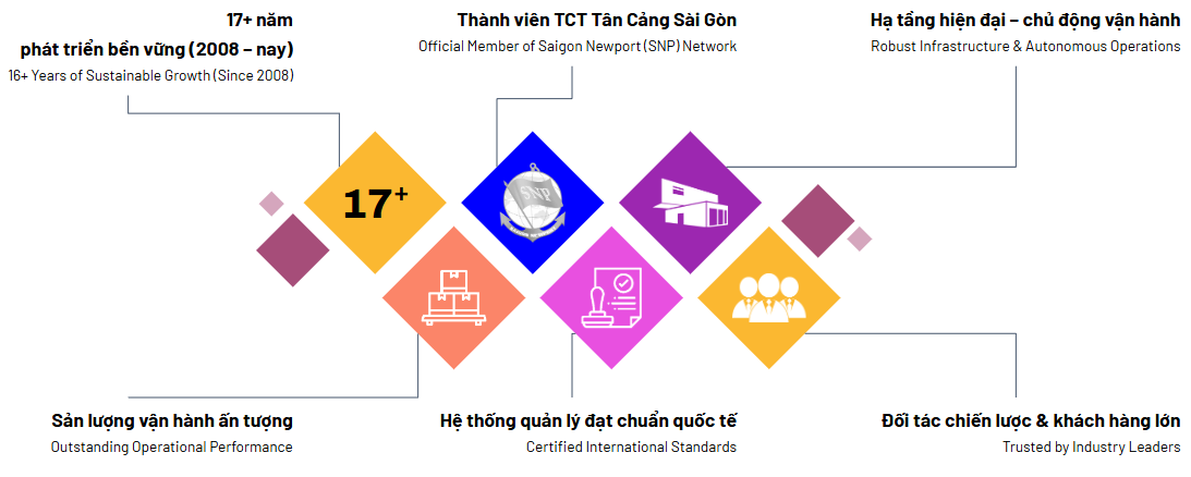 Với chiến lược phát triển kinh doanh bền vững và duy trì tiêu chuẩn dịch vụ cao nhất, Công ty Cổ phần Tiếp Vận Tân Cảng Bình Dương luôn kiên định trong suốt hành trình 17 năm để kiến tạo nên sự khác biệt, hoàn thành sứ mệnh mở rộng và phát triển dịch vụ Logistics cùng Công ty Cổ phần ICD Tân Cảng Sóng Thần, và là cánh tay nổi dài của Tổng Công ty Tân Cảng Sài Gòn tại khu vực Bình Dương, là đối tác tin cậy của Quý khách hàng trong hoạt động Logistics nội địa và quốc tế. Đồng thời, Tiếp Vận Tân Cảng Bình Dương luôn không ngừng hoàn thiện, cải tiến về An toàn – Chất lượng – Công nghệ nhằm phục vụ và đáp ứng kịp thời các tiêu chuẩn ngày càng cao từ Quý khách hàng.